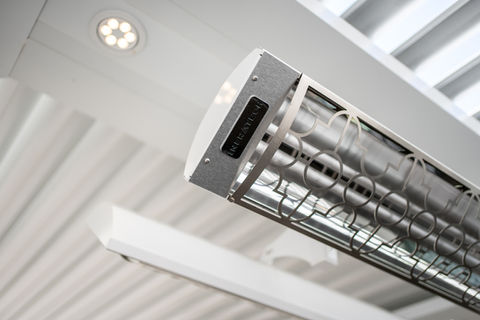 Step into the epitome of luxury outdoor living with "The Hampton," a breathtaking pergola project meticulously crafted by our expert team at Boston Pergolas. Nestled beside a sun-kissed pool and seamlessly attached to a pristine garage, The Hampton stands as a testament to elegance and functionality. The pristine white structure exudes sophistication, complemented by motorized louvers that gracefully dance with the sunlight. As the day transitions to night, bask in the warm glow of integrated LED lighting, while infrared heating ensures year-round comfort. Matte black ceiling fans add a touch of contemporary charm, creating a space where style meets unparalleled functionality.